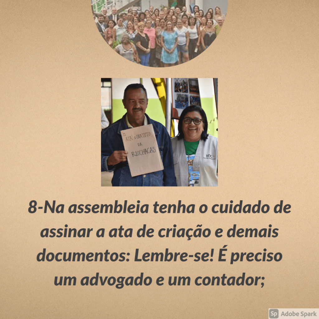 Aqui ao lado nós explicamos os pontos mais importantes para a criação de uma associação. Acompanhe pelas setas!