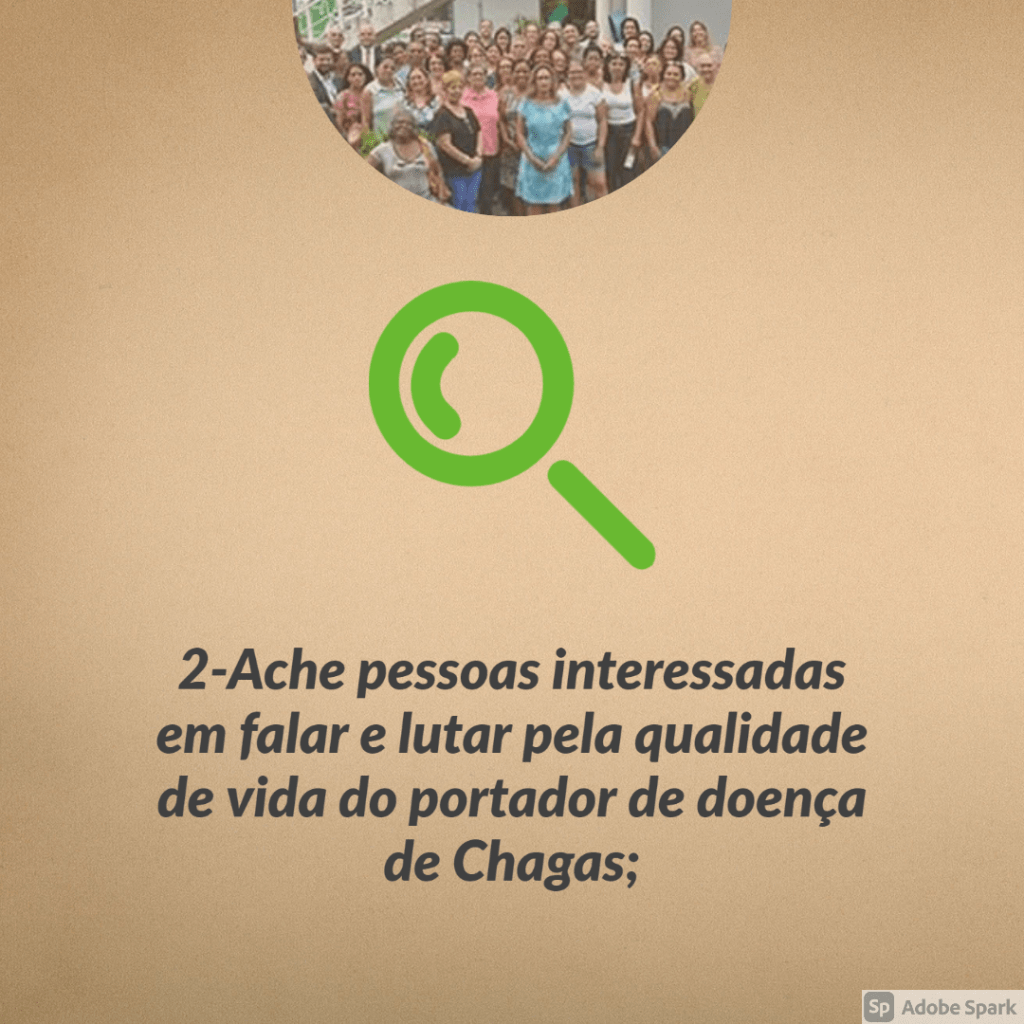 Associação dos portadores de doença de Chagas do Rio de Janeiro Brasil. (Rio Chagas). 5521-988928477 (Lucia)/ 552-1999011276 (Nancy). Email : riochagas@gmail.com. Facebook :@Riochagas
